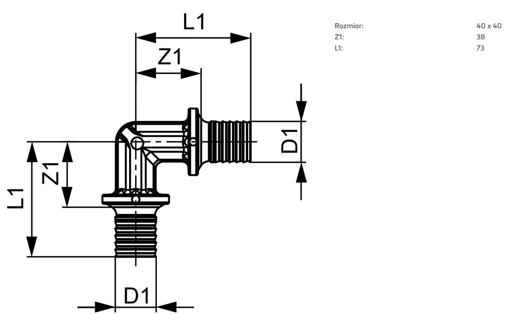 Kolano TECE Flex 40mm z mosiądzu standard 767040