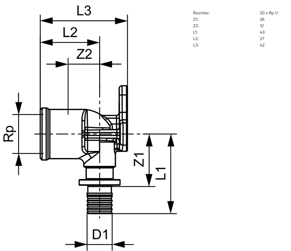 Kolano naścienne TECE Flex 20x1/2" GW z mosiądzu standard 768520