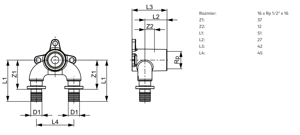 - Rozmiar: 16 x Rp 1/2" x 16