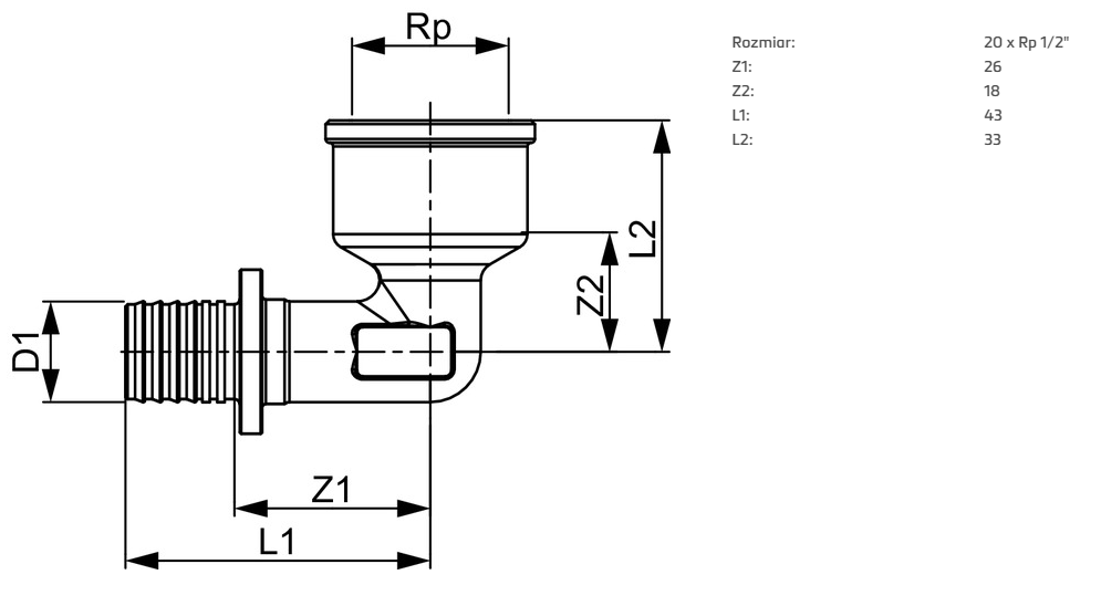 Kolano przejściowe TECE Flex 20x1/2" GW z mosiądzu standard 768020
