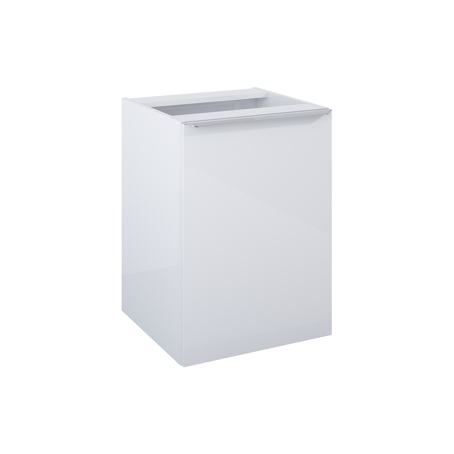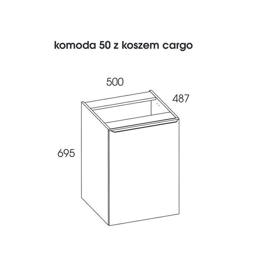 Komoda Lofty 50 cm z koszem cargo. Wykonana z materiałów wysokiej jakości, front i korpus z płyty laminowanej, lakierowanej na wysoki połysk. Uchwyty metalowe w kolorze chrom połysk. Kosz cargo w komodzie posiada wytrzymałe prowadnice o udźwigu do 20 kg, z pełnym wysuwem i systemem soft-close.
