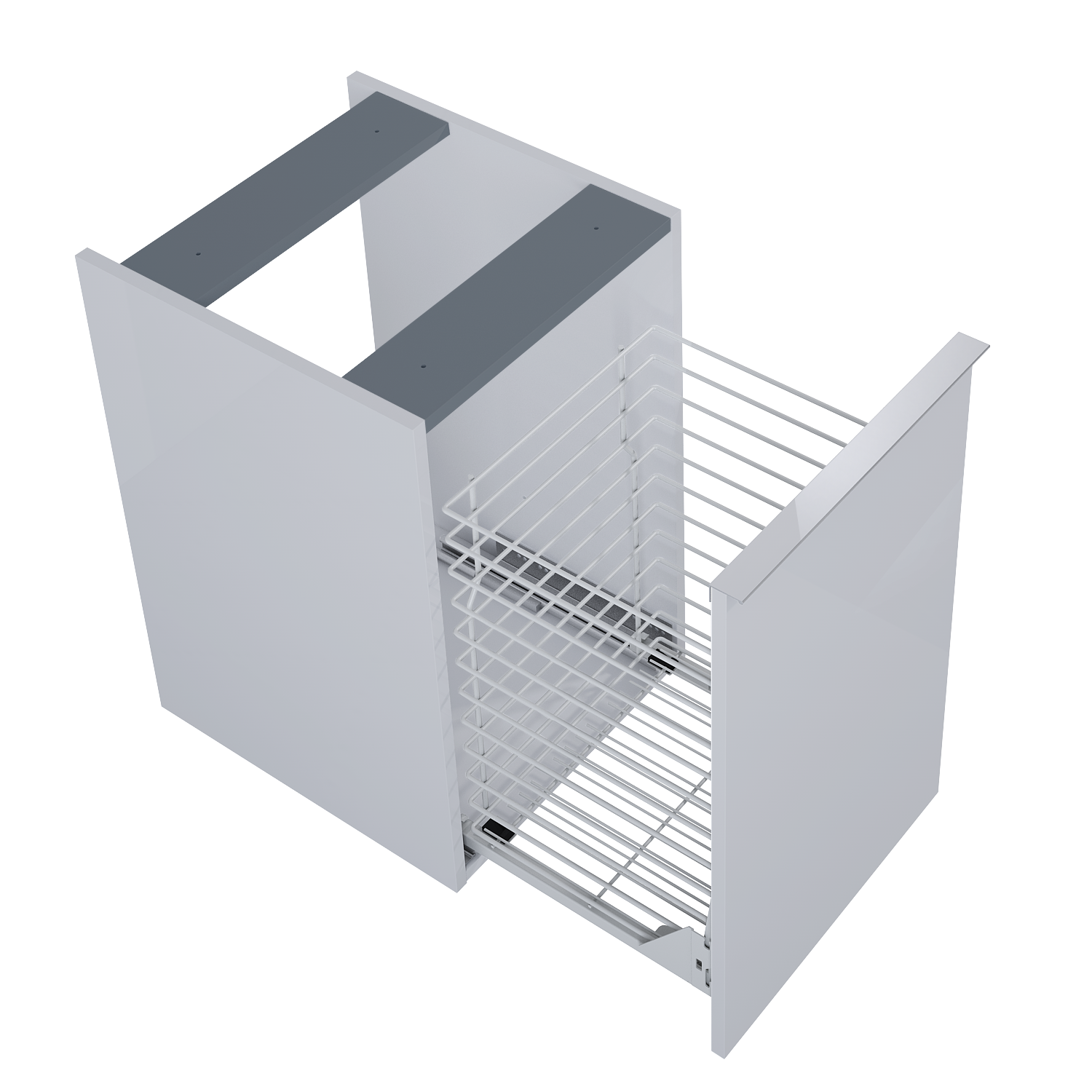 Komoda Look 40 cm z koszem cargo. Wykonana z materiałów wysokiej jakości, front i korpus z płyty laminowanej lakierowanej w kolorze stone matt. Kosz cargo w komodzie posiada wytrzymałe prowadnice o udźwigu do 20 kg, z pełnym wusuwem i systemem soft-close. Standardowo komoda zaopatrzona w metalowe uchwyty w kolorze chrom połysk. Uchwyty dostępne również w kolorach: white mat, stone mat, anthracite mat, black mat, gold połysk - sprzedawane po 1 sztuce.
