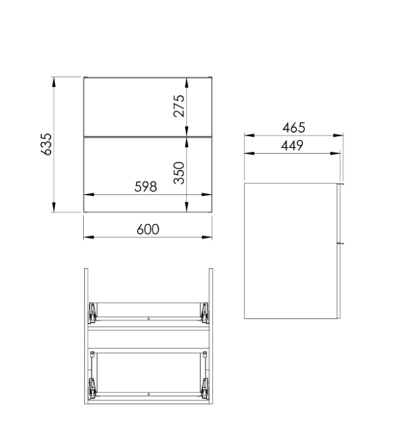 Komoda Look 60 cm, bez blatu, 2 szuflady z funkcją cichego samodomyku oraz z pełnym wysuwem. Komoda wykonana z materiałów odpornych na działanie wilgoci, front i korpus lakierowany w kolorze white matt. Standardowo komoda zaopatrzona w metalowe uchwyty w kolorze chrom połysk. Uchwyty dostępne również w kolorach: white mat, stone mat, anthracite mat, black mat, gold połysk - sprzedawane po 1 sztuce.