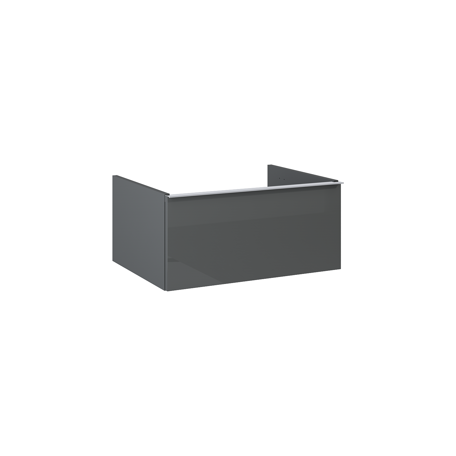 Komoda Look 60 cm anthracite, bez blatu, 1 szuflada z funkcją cichego samodomyku oraz z pełnym wysuwem. Komoda wykonana z materiałów odpornych na działanie wilgoci, front i korpus lakierowany, uchwyty metalowe w kolorze chrom połysk. Komoda przygotowana do łączenia z blatem.
