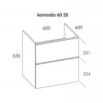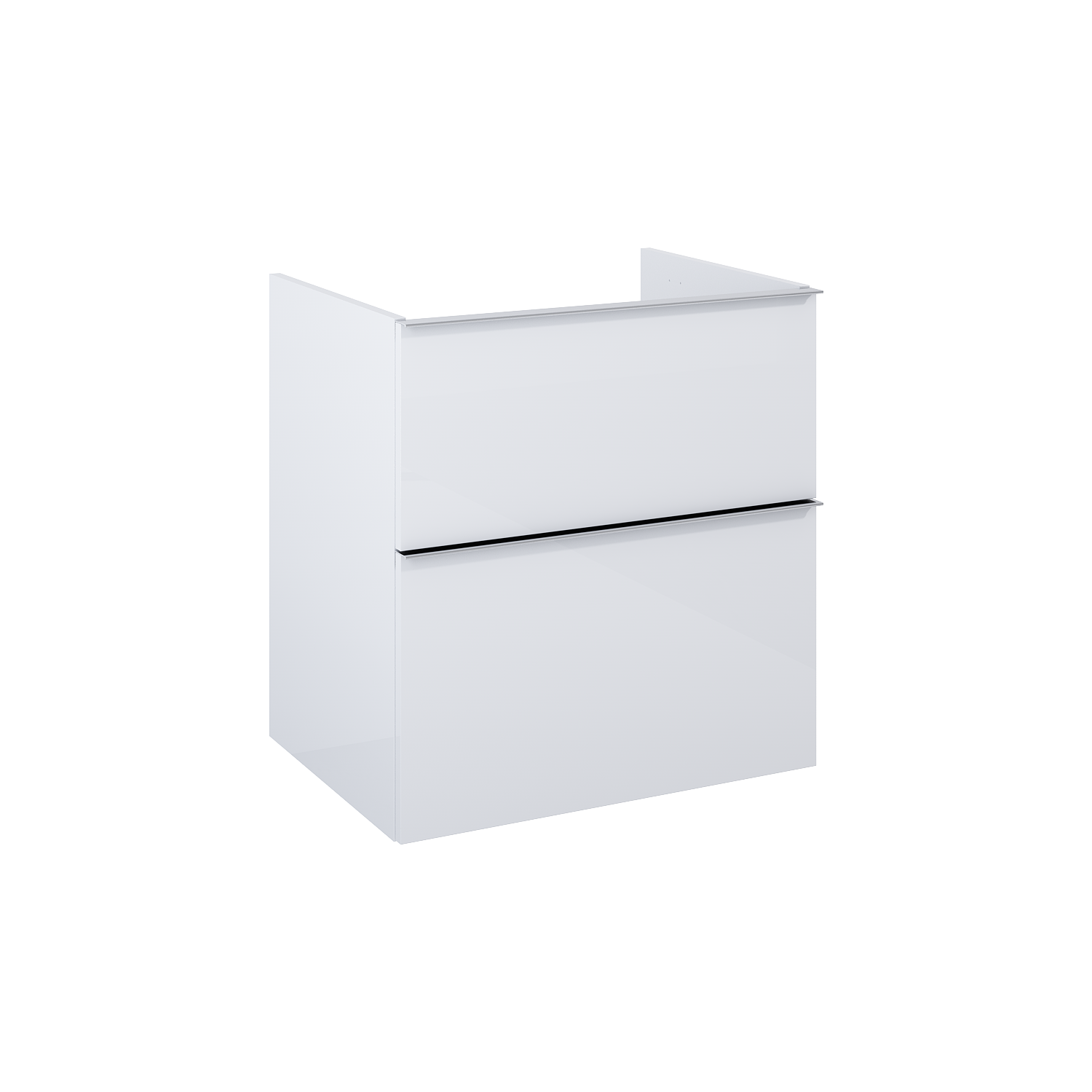 Komoda Look 60 cm biała, bez blatu, 2 szuflady z funkcją cichego domyku oraz z pełnym wysuwem. Komoda wykonana z materiałów odpornych na działanie wilgoci, front i korpus lakierowany, uchwyty metalowe w kolorze chrom połysk. Komoda przygotowana do łączenia z blatem.
