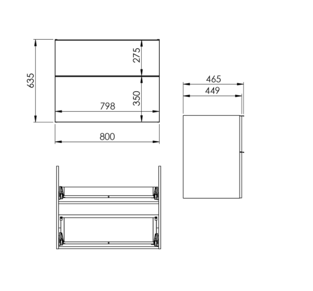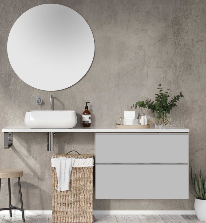 Komoda Look 80 cm, bez blatu, 2 szuflady z funkcją cichego samodomyku oraz z pełnym wysuwem. Komoda wykonana z materiałów odpornych na działanie wilgoci, front i korpus w kolorze stone matt. Standardowo komoda zaopatrzona w metalowe uchwyty w kolorze chrom połysk. Uchwyty dostępne również w kolorach: white mat, stone mat, anthracite mat, black mat, gold połysk - sprzedawane po 1 sztuce.