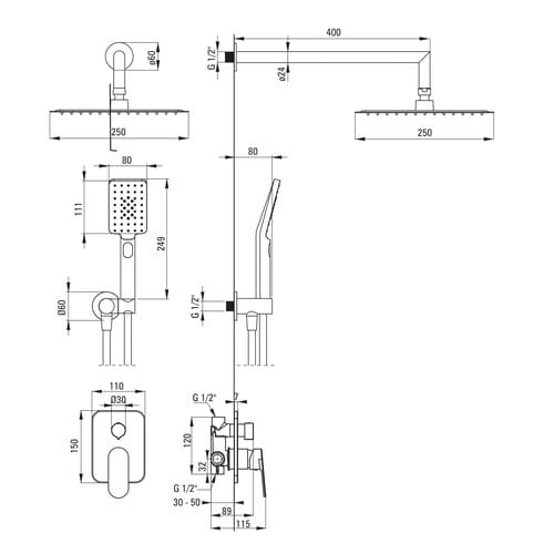 - Montaż podtynkowy zapewnia estetykę łazienki