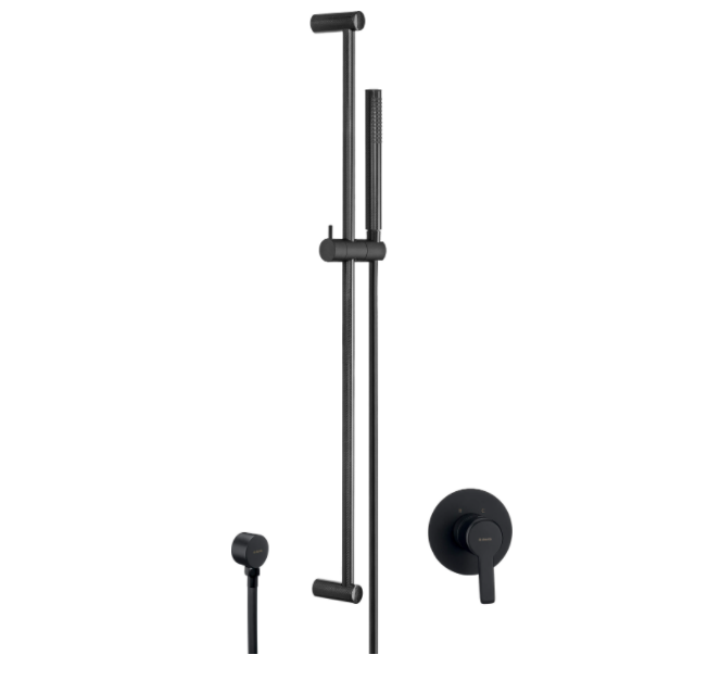 Podtynkowy komplet z zestawem natryskowym Arnika Nero w wykończeniu w eleganckiej satynowej czerni, składa się z podtynkowej baterii natryskowej z okrągłym korpusem z dźwignią, 90 cm drążka i słuchawki wykonanych z trwałego i lekkiego karbonu oraz czarnego węża o długości 1,5 m z systemem anty-twist zapobiegającym jego skręcaniu. Słuchawka prysznicowa o smukłym, wydłużonym kształcie, doskonale leży w dłoni i nie wypada z uchwytu dzięki zastosowaniu pierścienia o-ring, a użytkownik ma dodatkowo możliwość regulacji jej wysokości i kąta nachylenia. System anti-calc ułatwia pozbycie się wapiennego osadu i utrzymanie produktu w czystości. Ukrycie nieatrakcyjnych elementów instalacji to najważniejsza zaleta podtynkowego montażu, a jednocześnie cecha, która ułatwia utrzymanie łazienki w czystości.