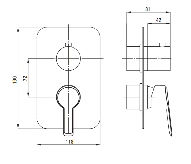 - bateria mieszaczowa z przełącznikiem natrysku i elementem podtynkowym