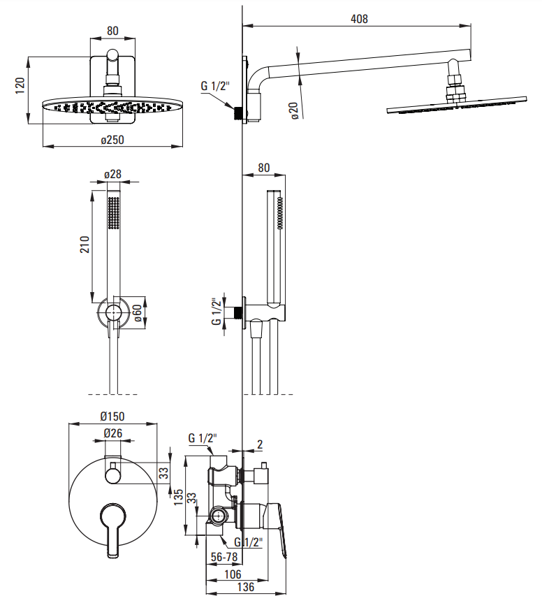 Natryskowy komplet podtynkowy z kolekcji Arnika Titanium to doskonały przykład połączenia klasycznych, naturalnych kształtów z innowacyjną kolorystyką, nowoczesnym designem i funkcjonalnością. W skład zestawu wchodzi bateria mieszaczowa z okrągłym panelem z dźwignią i mechanicznym przełącznikiem natrysku, umożliwiającym przełączanie źródła wody pomiędzy słuchawką a głowicą natryskową, uchwyt na słuchawkę wykonaną z mosiądzu z funkcją CoolOut, co oznacza, że rączka słuchawki nie nagrzewa się, wąż PCV w pasującym do kompletu kolorze oraz mosiężna, okrągła głowica natryskowa. Jak wszystkie produkty z linii Arnika Titanium, zestaw ten ma ciemny, przyjemny dla oka odcień szarości, który doskonale pasuje zarówno do białych, jak i czarnych elementów wyposażenia łazienki, a także drewnianych lub kamiennych blatów, czy mebli. System anti-calc ułatwia czyszczenie głowicy oraz słuchawki z osadu i kamienia.
