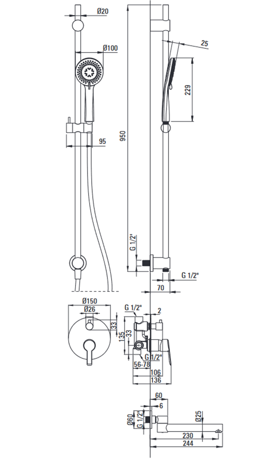 - Zasięg wylewki natryskowej/ wannowej [mm] 230