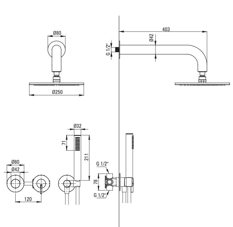 Silia Zestaw prysznicowy podtynkowy z głowicą prysznicową - z baterią poziomą