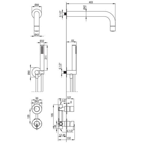 Set prysznicowy Silia składa się z wylewki ściennej wraz z główką natryskową, baterii, węża, słuchawki natryskowej i przyłącza kątowego. Główka natryskowa ma strumień o optymalnej intensywności, w kształcie stożka. Bateria posiada ceramiczny, mechaniczny przełącznik funkcji. Wąż, dzięki systemowi Anti - twist, nie skręca się podczas użytkowania. Słuchawka natryskowa wykonana została z wysokogatunkowej stali nierdzewnej i posiada przyjemny deszczowy strumień. Przyłącze kątowe jest ruchome, dzięki czemu można dostosować kąt nachylenia słuchawki do preferencji użytkownika.