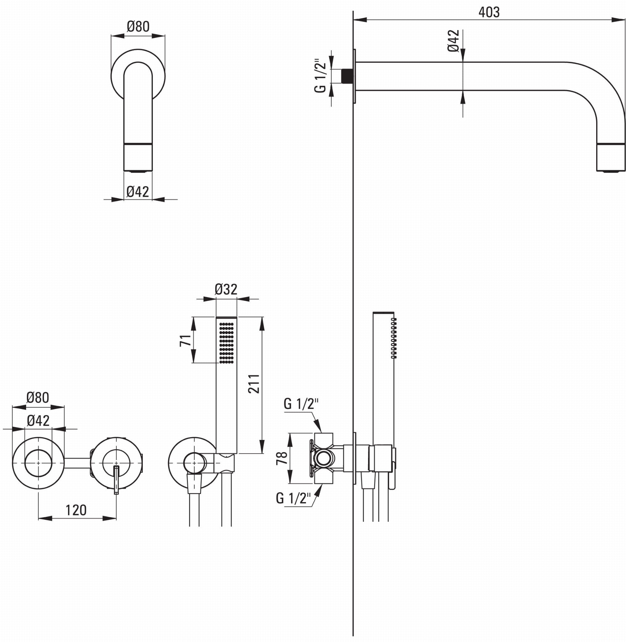 - zasięg wylewki natryskowej/ wannowej [mm]: 382
