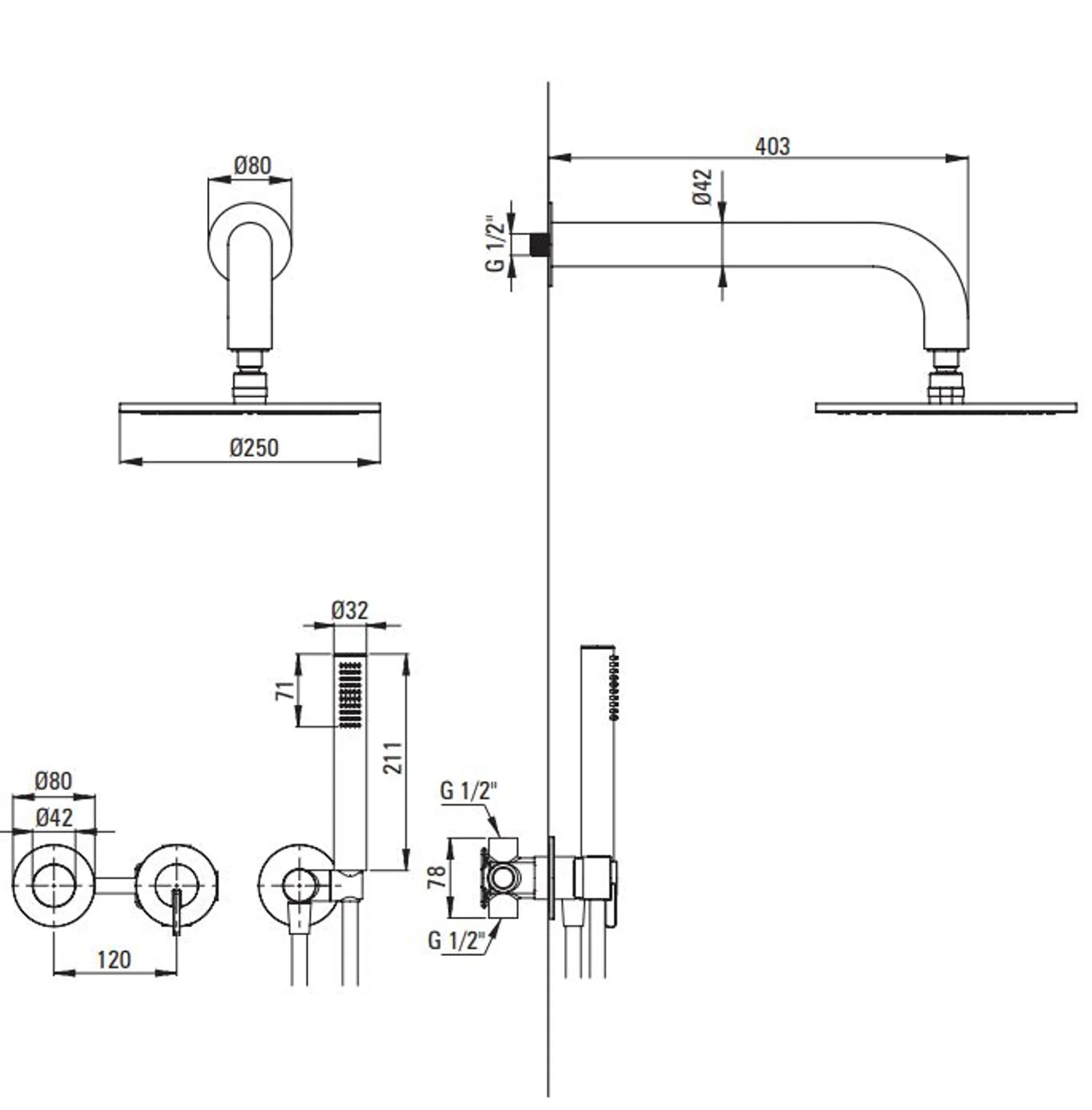 SILIA Zestaw prysznicowy podtynkowy z głowicą prysznicową - z baterią poziomą
