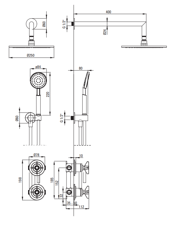 Komplet podtynkowy składa się z mosiężnej głowicy, słuchawki prysznicowej, wylewki ściennej, węża natryskowego i baterii jednouchwytowej mieszaczowej z przełączeniem natrysku. Bateria wyposażona jest w głowicę progresywną, zasady jej działania przedstawiamy w filmie poniżej. Zarówno słuchawka, jak i głowica wyposażone zostały w system anti-calc, dzięki czemu są łatwe do utrzymania w czystości. Wykończenie w kolorze mosiądzu sprawi, że twoja łazienka nabierze oryginalnego wyglądu. Kupując zestaw masz pewność, że wszystko idealnie do siebie pasuje.