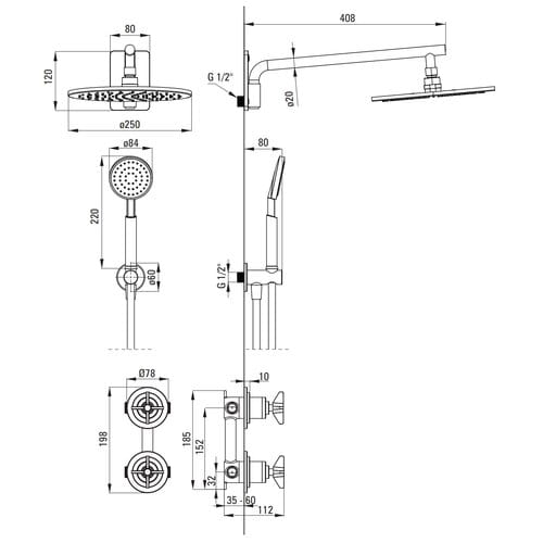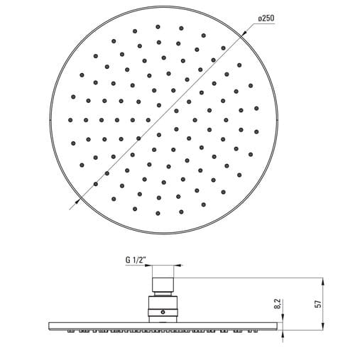 - deszczownica okrągła o średnicy 25 cm, 1-funkcyjna z systemem anti-calc wykonana z mosiądzu