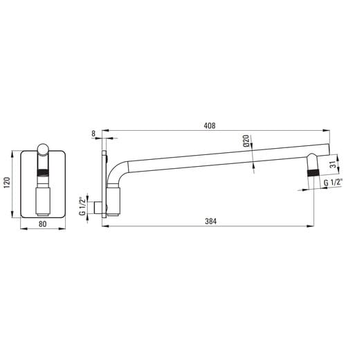 - ramię prysznicowe o długości 38,4 cm