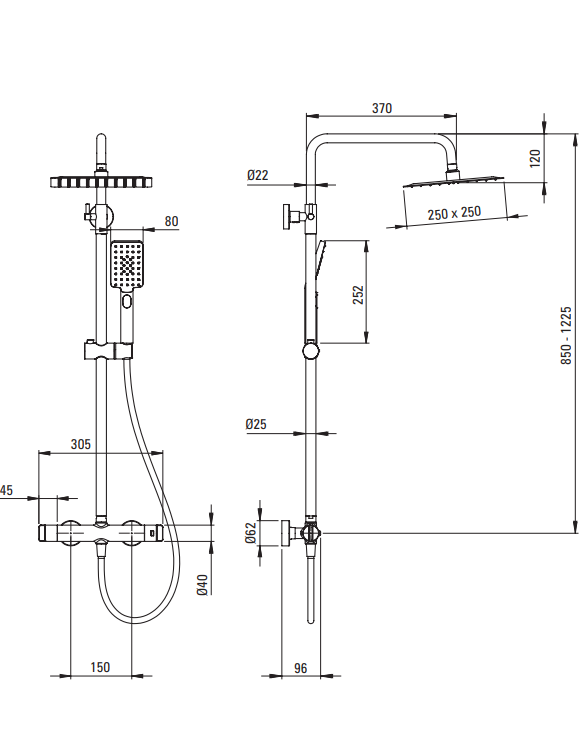 - rodzaj baterii: dwuuchwytowa, termostatyczna (bateria)
