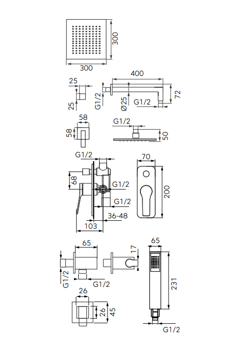 SEPPIA Kompletny system podtynkowy prysznicowy z baterią i deszczownicą
