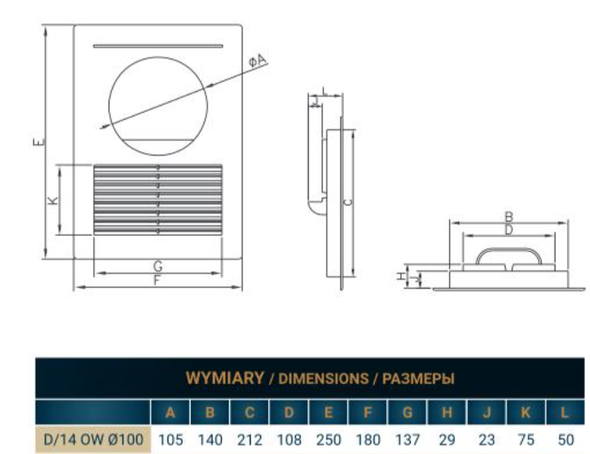 Zakończenia wentylacyjne D/14 OW DOSPEL Ø100 (kratka standard)