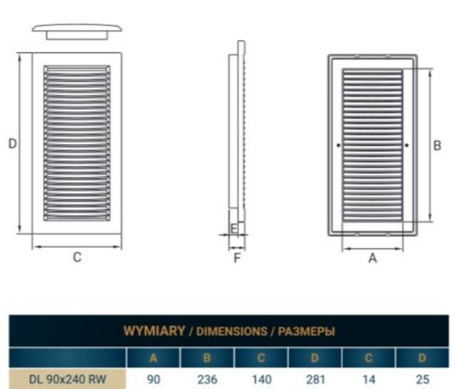 Zakończenia wentylacyjne DOSPEL DL/90x240 RW (kratka lux)