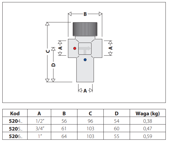 Mieszacz termostatyczny CALEFFI 1/2", regulowany 520430