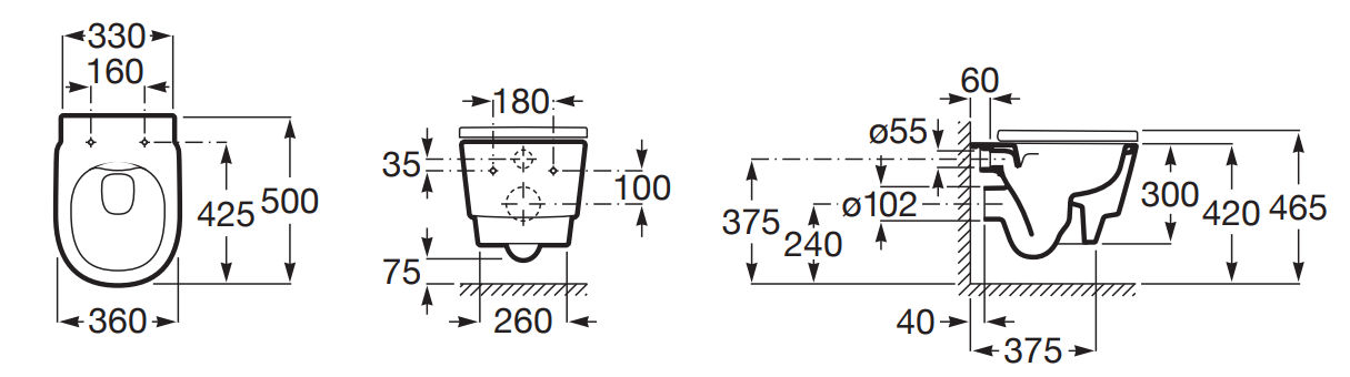 Zaokrąglony kształt oraz poziomy odpływ zapewniają komfort użytkowania i dopasowanie do standardowych instalacji na stelażu ściennym. W komplecie znajduje się zestaw montażowy, a wymiary 360 × 500 × 465 mm sprawiają, że miska idealnie sprawdzi się zarówno w mniejszych, jak i większych łazienkach.