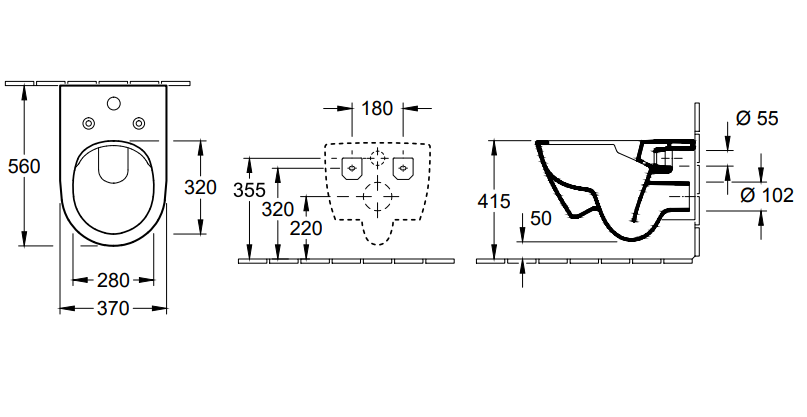 Miska wisząca VILLEROY&BOCH SUBWAY 2.0 56cm, DirectFlush, ViFresh, CeramicPlus, biała 5614A1R1