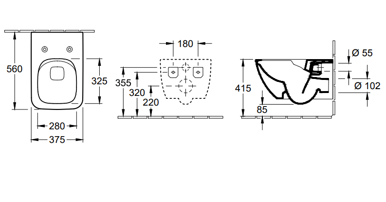 - Wskazówki montażowe: nie nadaje się do montażu ze spłuczkami ciśnieniowymi