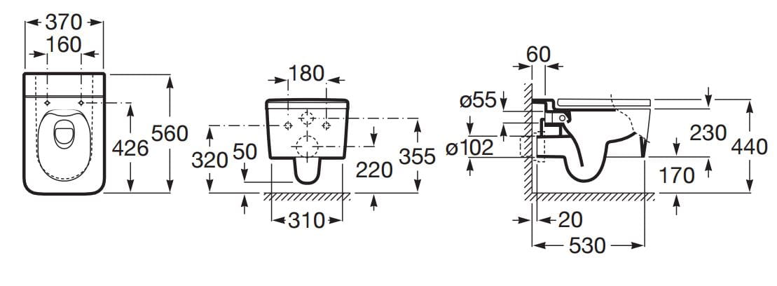 Miska wisząca WC ROCA INSPIRA SQUARE Rimless A346537000