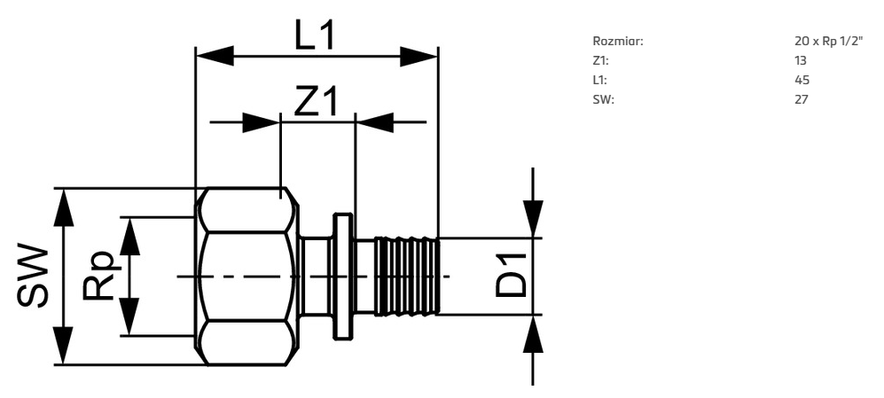 Mufa przejściowa TECE Flex 20x1/2" GW z mosiądzu standard 765003