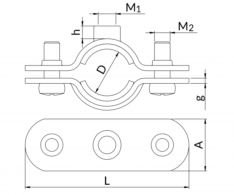 Obejma pojedyncza UPGM M8 DN22 (20-23mm) do rur CU, z kołkiem, skręcona