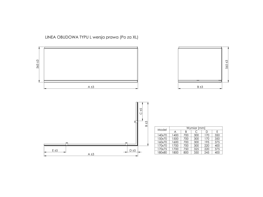 Obudowa typu " L" prawa do wanny akrylowej