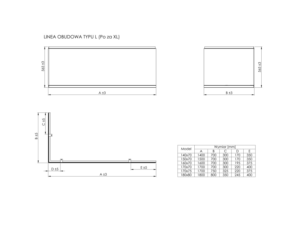 Obudowa typu " L" lewa do wanny akrylowej