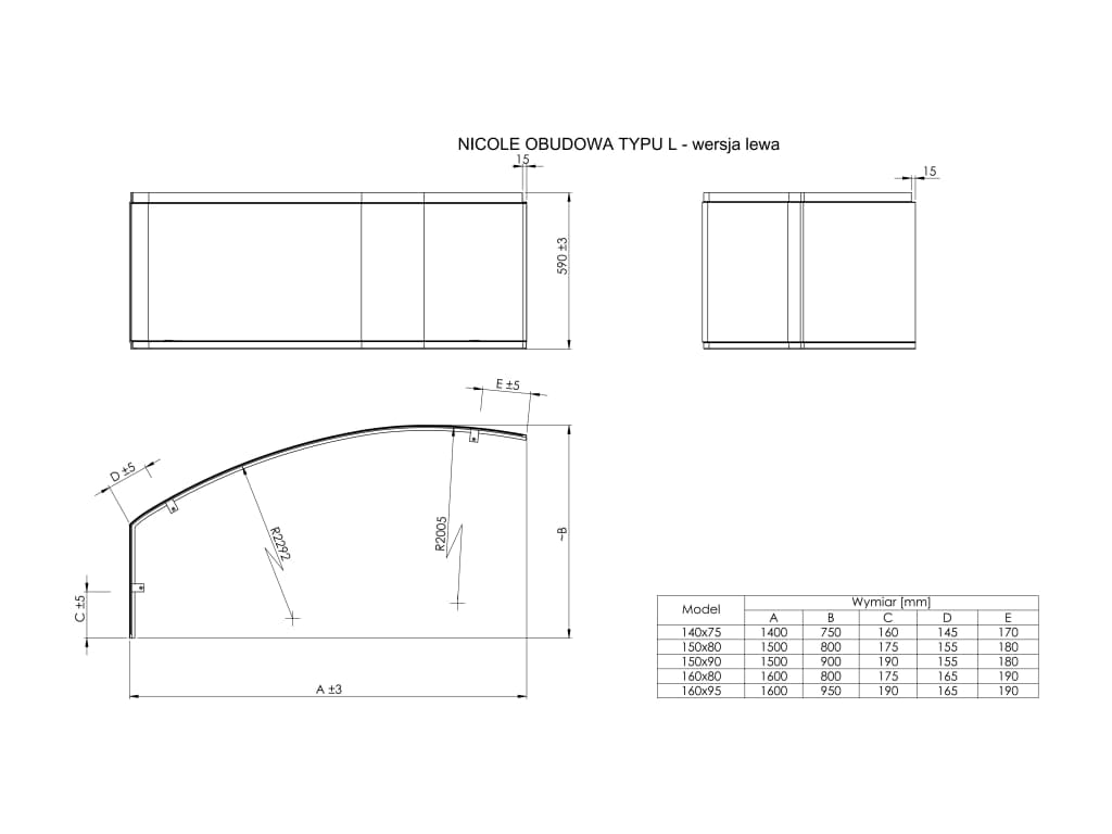 Obudowa typu " L" lewa do wanny akrylowej