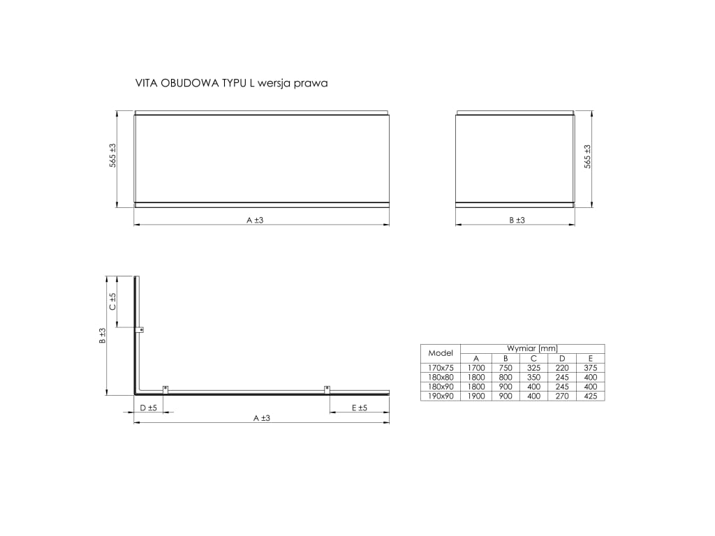 Obudowa typu " L" prawa do wanny akrylowej