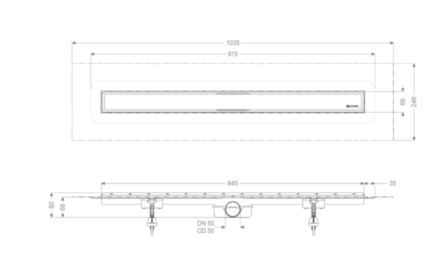 Odpływ liniowy KESSEL LINEARIS COMPACT 85cm, poziomy, fabrycznie zamontowana mata, sitko, DN50, system 125, stal 45600.64M