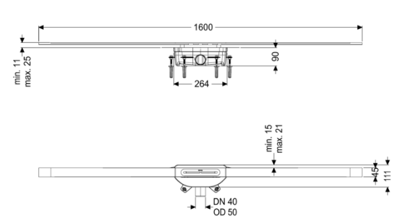Wąski odpływ liniowy Linearis Infinity do montażu na równi z podłogą jest przystosowany do odwodnienia liniowego wewnątrz pomieszczeń domowych i przemysłowych. Profil odpływu ze stali nierdzewnej 1.4404 (V4A) można przedłużyć prosto lub z użyciem trzech elementów kątowych (30°, 45° i 90°). Korpus z PP jest wyposażony w izolatory akustyczne i przeciwdrganiowe (kołki). Odpływ posiada kołnierz z zamknięciem zatrzaskowym z fabrycznie zamontowaną matą hydroizolacyjną zgodnie z normami PN-EN 1253-1 i DIN 18534-1-W3-I. Profil odpływu można przesunąć w kołnierzu z zamknięciem zatrzaskowym wzdłuż i w poprzek w celu skompensowania tolerancji budowlanych. Z syfonem z zamknięciem wodnym 50 mm. Otwarty otwór odpływowy na wodę przesiąkającą zapobiega zalewaniu powierzchni uszczelniającej wskutek nadpiętrzenia.