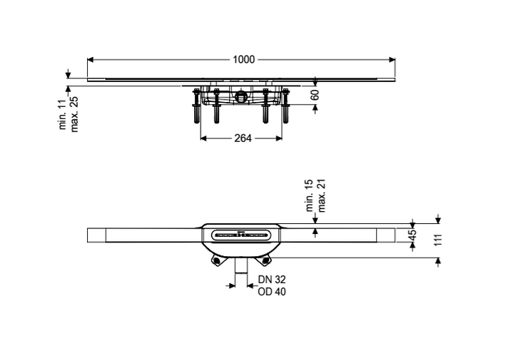 Wąski odpływ prysznicowy liniowy Linearis Infinity do montażu na równi z podłogą jest przystosowany do odwodnienia liniowego wewnątrz pomieszczeń domowych i przemysłowych. Wąski odpływ prysznicowy liniowy Linearis Infinity do montażu na równi z podłogą jest przystosowany do odwodnienia liniowego wewnątrz pomieszczeń domowych i przemysłowych. Profil rynny ze stali nierdzewnej 1.4404 (V4A) można przedłużyć w linii prostej lub z użyciem trzech elementów kątowych (30°, 45° i 90°). Korpus z PP jest wyposażony w kołki montażowe dźwiękochłonne. Redukują one hałas związany z pracą urządzenia i mogą kompensować osiadanie konstrukcji podłogi. Rynna zawiera kołnierz zatrzaskowy z fabrycznie zamontowaną matą hydroizolacyjną zgodnie z normami DIN EN 1253-1 i DIN 18534-1-W3-I. Profil rynny można przesuwać w kołnierzu zatrzaskowym wzdłużnie i poprzecznie w celu kompensowania tolerancji konstrukcyjnych. Z mechanicznym syfonem Megastop z zamknięciem wodnym. Otwarte otwory odpływowe na wodę przesiąkającą zapobiega zalewaniu powierzchni uszczelniającej wskutek nadpiętrzenia.