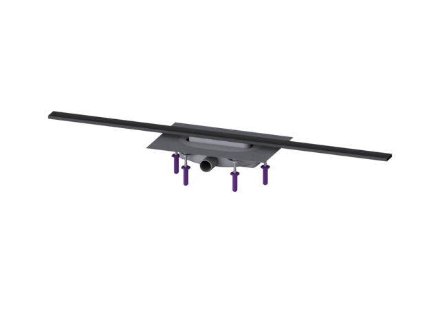 Korpus z PP jest wyposażony w izolatory akustyczne i przeciwdrganiowe (kołki). Odpływ posiada kołnierz z zamknięciem zatrzaskowym z fabrycznie zamontowaną matą hydroizolacyjną zgodnie z normami PN-EN 1253-1 i DIN 18534-1-W3-I. Profil odpływu można przesunąć w kołnierzu z zamknięciem zatrzaskowym wzdłuż i w poprzek w celu skompensowania tolerancji budowlanych.