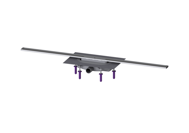 Korpus z PP jest wyposażony w izolatory akustyczne i przeciwdrganiowe (kołki). Odpływ posiada kołnierz z zamknięciem zatrzaskowym z fabrycznie zamontowaną matą hydroizolacyjną zgodnie z normami PN-EN 1253-1 i DIN 18534-1-W3-I. Profil odpływu można przesunąć w kołnierzu z zamknięciem zatrzaskowym wzdłuż i w poprzek w celu skompensowania tolerancji budowlanych.