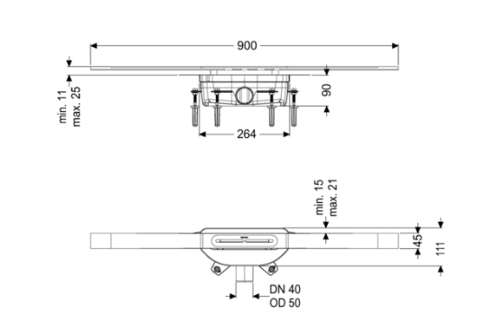 Dane techniczne: - długość odpływu: 900 mm