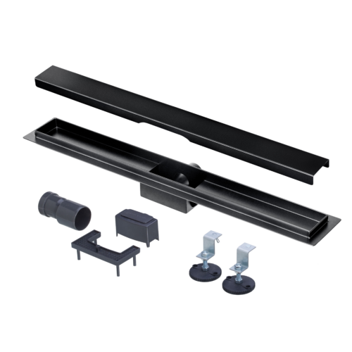 Odpływ liniowy SCHLOSSER PLATINUM 80cm, H=70mm, ruszt odwracalny do wklejenia płytki, czarny mat 606500003.RAL90051