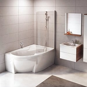 Niezawodna i najbardziej popularna wanna Rosa I zapewnia zrównoważoną kombinację ceny, jakości i walorów użytkowych. Jej oryginalny kształt oraz zaskakująco duża przestrzeń wewnętrzna umożliwiają komfortową kąpiel i prysznic w jednym, nawet w małej łazience. Wygodne miejsce podczas kąpieli jest w wannach Rosa oczywistością, ale razem z parawanem nawannowym tworzy też przestronną kabinę prysznicową. Część prysznicowa ma szerokie płaskie dno i zintegrowane siedzisko. Dzięki czemu można wziąć wygodny prysznic na stojąco. W zależności od konkretnego rozmiaru wanny szerokość w rejonie ramion wynosi nawet 105 cm. Aby kąpiel była jeszcze bardziej komfortowa, wanny Rosa można dodatkowo wyposażyć w praktyczny uchwyt, ułatwiający wychodzenie z wanny. Do wanien Rosa możesz dokupić inne elementy konceptu z zaprojektowanego w tym samym stylu. W łazience może się znaleźć umywalka, meble, baterie, parawan i inne dodatki, wszystko w jednolitym stylu, bazującym na kształcie wanny.