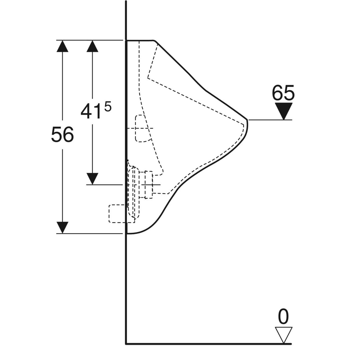 Pisuar Geberit Felix, dopływ z tyłu, odpływ do tyłu