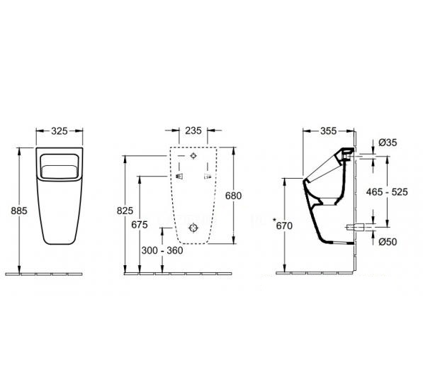 - Zakres dostawy: 1 x pisuar, 1 x odpływ, 1 x zestaw mocujący