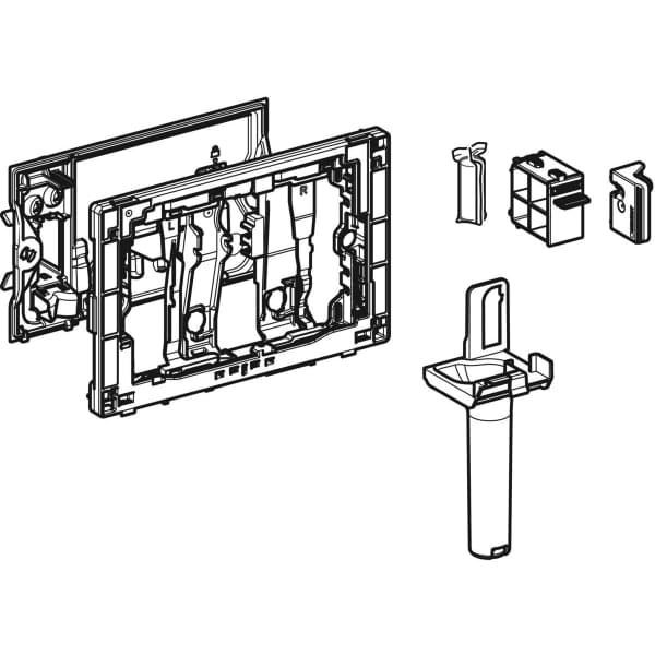 - W zestawie: ramka mocująca z mechanizmem odchylania, płytka ochronna, pojemnik wiszący na wkład Geberit DuoFresh, szuflada z uchwytem na wkład Geberit DuoFresh, 8 wkładów Geberit DuoFresh