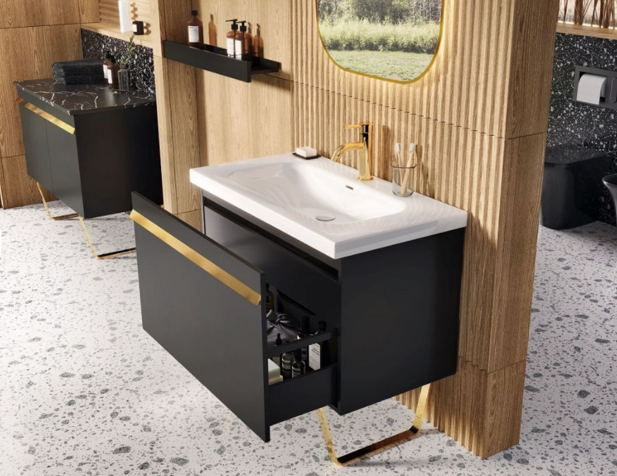 Meble charakteryzuje wysoka funkcjonalność oraz harmonia kompozycji zestawianych ze sobą elementów. Połączenie szafki z lustrem idealnie uzupełni przestrzeń nad umywalką i stworzy dodatkowe miejsce do przechowywania drobnych przedmiotów codziennego użytku.