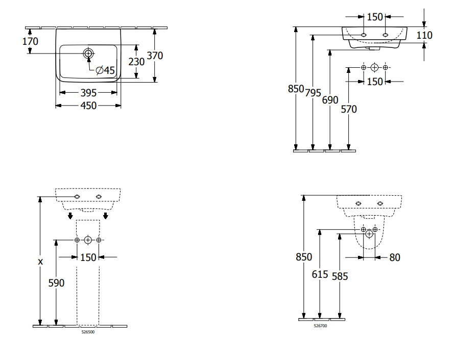 Półpostument VILLEROY&BOCH O.NOVO do małych umywalek, biały 52670001